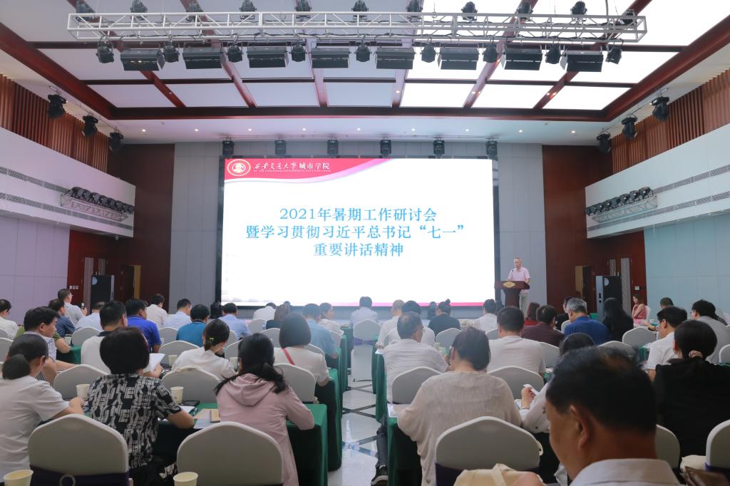 张爱萍书记以《学习贯彻总书记七一重要讲话精神深化新时代大学生素质教育评价方案》为题,从评价方案原则、评价方案聚焦、评价方案基本组成、评价方案的改革内容、修订课外学分管理办法、推进学生健康管理细则实施、构建“多彩青春、活力校园”活动等七个方面阐释了学院深化新时代学生素质教育评价方案。同时,张爱萍书记和与会人员一起探讨了教育工作者的初心使命,即为谁培养人,培养什么人,怎样培养人。