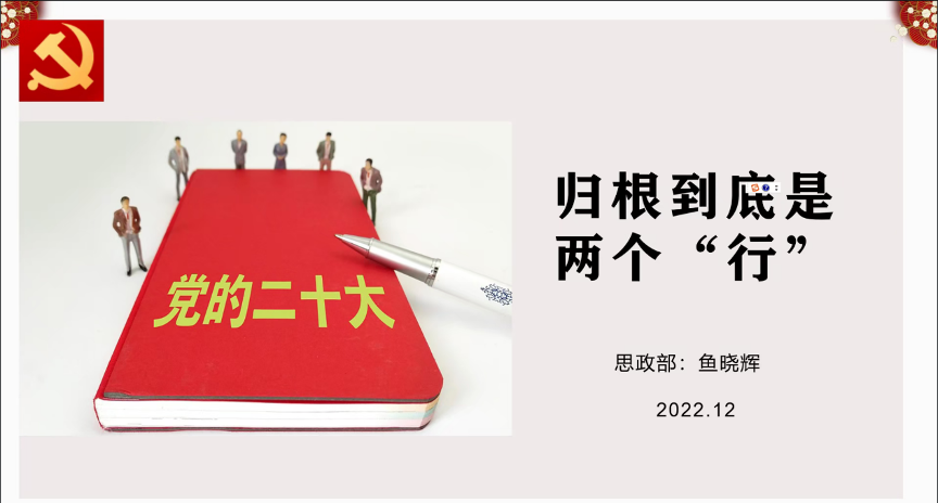 为深入学习贯彻党的二十大精神,12月9日下午,学院机关第六党支部、外语系教工党支部、外语系学生党支部在腾讯会议共同召开学习贯彻党的二十大精神宣讲报告会。本次报告会特邀思政部鱼晓辉老师主讲,外语系教工党支部与外语系学生党支部全体党员参加,会议由学院机关第六支部书记黄迎老师主持。