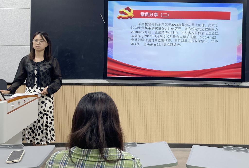 为进一步加强学生党员对党的纪律和规矩的认识,引导他们坚定理想信念,筑牢思想防线。5月29日下午,外国语学院学生党支部在B307开展“知敬畏,存戒惧,守底线”党纪学习教育。
