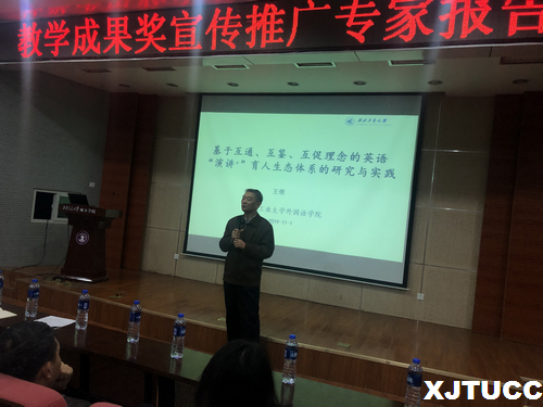 报告会中,王倩副教授从英语教学中遇到的实际问题如课时缩减、第二课堂辐射面不广、学生学习动机弱且英语学习四年中前后断线、学生语言能力难以实现可持续性发展等现状出发,分享了西北工业大学英语课程教改团队通过构建“以学生为中心,理念与实训相结合”,实现“四位一体”即“二语语言素质+文化素养+思辨能力+实际应用”的“演讲+”人才培养模式。依托“英语演讲与思辨”课程,以学生为主体,教师为主导,建立生态化的师生和谐关系;注重学生学习过程性管理,创建了多元化的学生评价体系;强调互赢互利,打造师生共同学习体;以合作为导向,促进优质资源生态流动。整场报告会信息量大,内容丰富,让外语系教师和学生受益匪浅。报告会后部分教师与王老师就如何结合第二课堂和开设选修课引导学生的英语学习兴趣并实现有效语言学习进行了深入讨论。