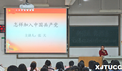 9月29日,张天从入党意义、入党流程、党员发展的基本程序三个方面向大家介绍了加入中国共产党的详细条件及流程,随后强调青年大学生的成长和奋斗离不开党的领导,要求同学们端正入党动机,树立长远目标,努力提高个人道德修养。