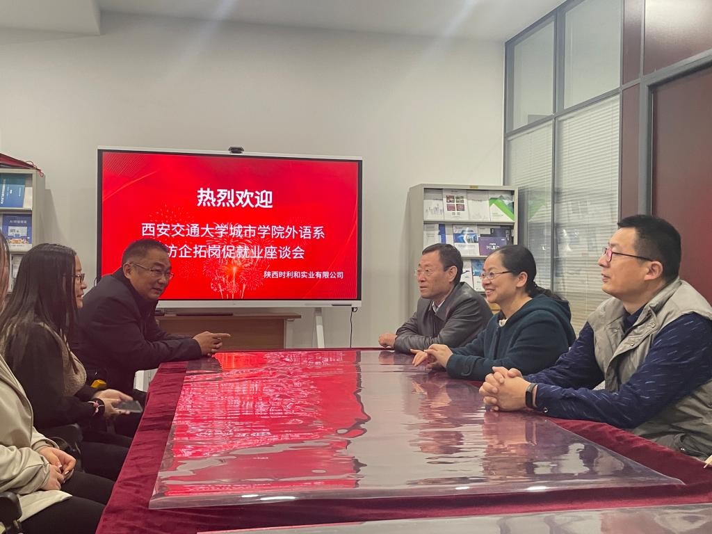 4月3日,在外语系主任郭继荣教授的带领下,系副主任徐素云、主任助理吴夫迎、办公室副主任关天骄、学生工作负责人吴丹、毕业班辅导员韩蓉一行人走访了陕西时利和实业有限公司,就进一步拓展校企合作发展空间,培养外语应用型人才及2019、2020级学生就业工作与生产实习等相关事宜进行交流。座谈会上,郭继荣主任介绍了外语系的人才培养目标,学生的就业优势及近年来的就业基本情况。企业执行董事长杨广田介绍了单位的基本情况,表示希望双方继续融合各自优势,实现资源共享,进一步加大合作的广度及深度,实现外语系和用人单位在人才培养和选拔聘用的双赢。