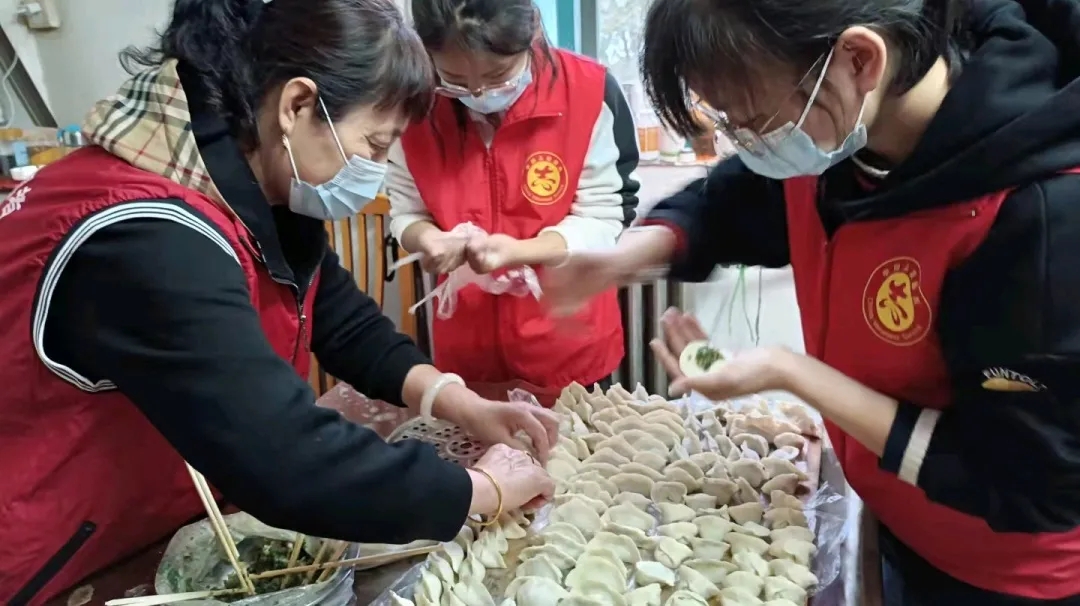 志愿者们同老人们一起参与到了包饺子的活动中来,每个志愿者都努力学习包出令自己满意的饺子,即便形状千奇百怪,但是每个饺子中都凝聚了志愿者们所倾注的心意与温暖,它们终将成为这个秋天最为瑰丽的色彩。