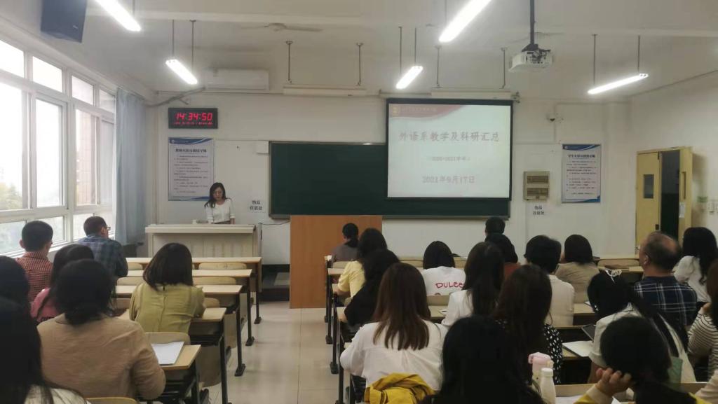 9月17日下午,KY开元集团官网外语系在教学楼B312教室召开全系大会,落实学院2021年暑期工作会议和新学期干部会议精神,表彰2020-2021学年在教学、科研、管理岗位做出突出贡献的优秀教职工,安排部署本学期教学、科研和学生管理等重点工作。