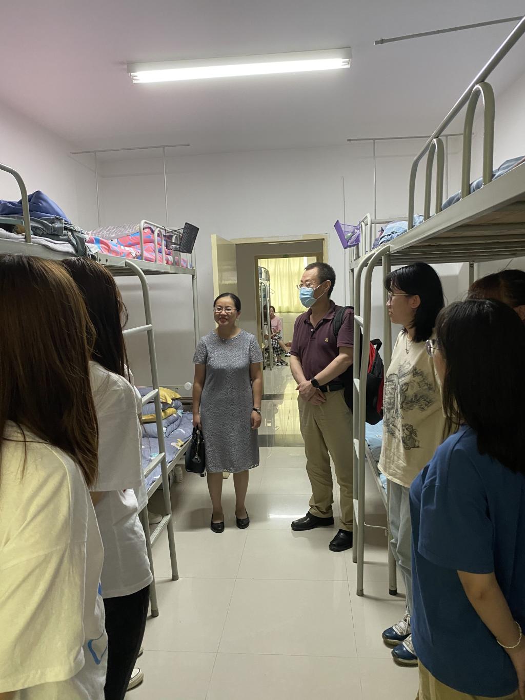 老师们首先来到一号公寓楼了解新生的住宿环境及安全设施。在走访过程中,郭老师亲切地与新生交谈,询问新生生源地,详细了解他们对于宿舍环境、居住条件的适应程度,同时叮嘱同学们要保持宿舍卫生,与同学和睦相处,他强调辅导员要深入新生生活,对于同学们反应的问题及时处理,密切关注学生的心理和生活情况。徐老师特别提醒同学们注意宿舍的财产安全和用电安全,提高安全意识,如遇到困难和问题及时向辅导员老师和公寓管理员反映,舍友间齐心协力共同营造良好的住宿环境、学习氛围。