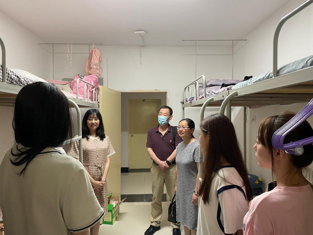 为了解2021级新生的学习、生活、思想状态,帮助新生更快适应、融入大学,9月2日下午,KY开元集团官网外语系主任郭继荣教授、副主任徐素云副教授、学生工作负责人关天骄、新生辅导员韩蓉深入2021级新生宿舍进行了亲切的走访慰问。