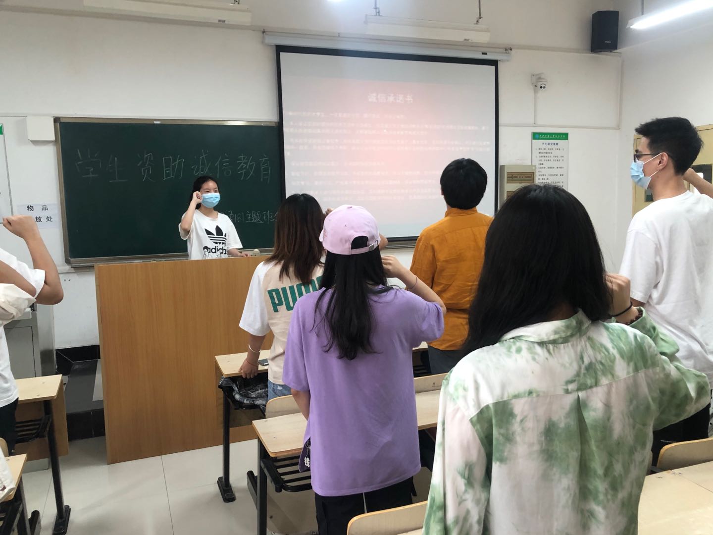 为宣传资助政策,深化资助育人效果,外语系于6月8日开展诚信资助主题教育班会。引导学生全面践行社会主义核心价值观,提高受资助学生的诚信意识,培养学生诚信理念,为受助学生讲解毕业后按时还贷的必要性。