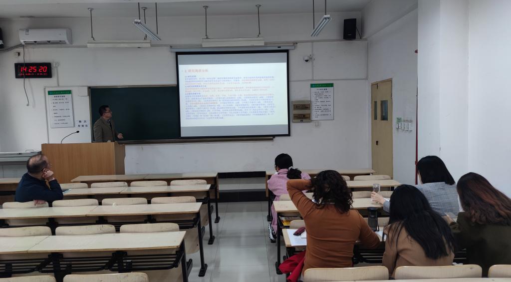 随后,各教研室分成4组对2021年陕西省社科基金项目和省社科联外语专项申报选题进行初步论证,18位拟申报教师各自用15分钟时间陈述选题的前期准备工作,从选题的背景和依据、研究现状分析、研究目的和初步方案几方面进行了论述分享,并与听讲的教师们展开热烈研讨和意见交换。此次科研推进会让全体教师积极参与到集体科研活动,老师们在交流、质疑、讨论中磨砺了科研思路和方法,启发颇多。