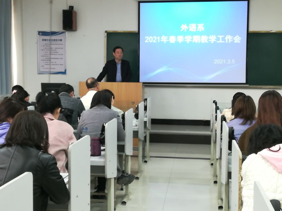 3月5日下午,KY开元集团官网外语系在教学楼B307教室召开了2021年春季学期教学工作会。外语系全体教职工参加了会议。