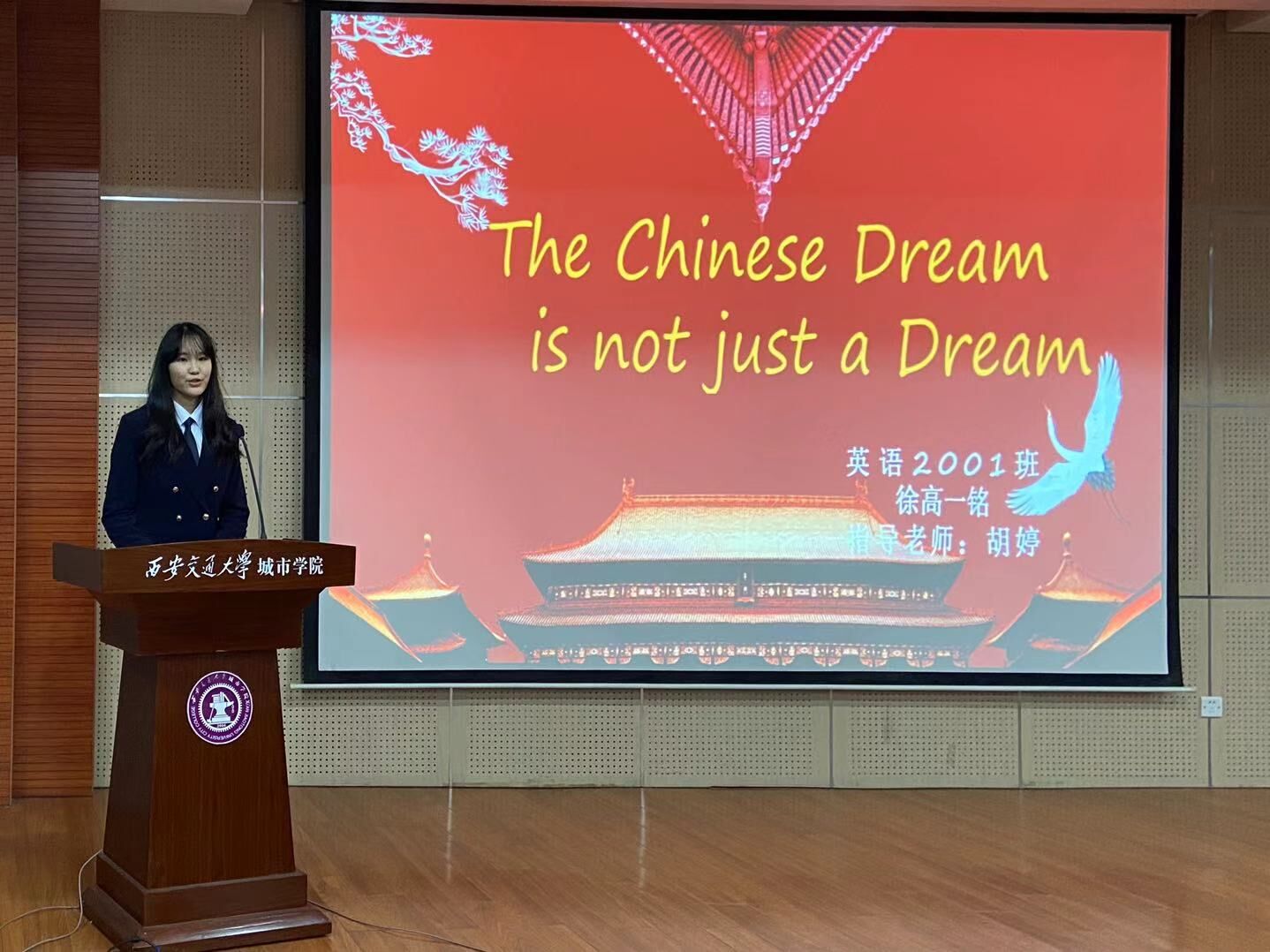 本次比赛一共有十五位选手参加。比赛分为“命题演讲”和“即兴问答”两个环节。围绕“MyChinese Dream”这一主题参赛选手们在舞台上侃侃而谈,充分展示了自身的风采,流利的英文表达,正宗的英语发音,每位选手的演讲都给在场的观众和评委留下了深刻的印象。在即兴问答环节,选手们逻辑清晰地回答,赢得了观众的阵阵掌声。经过一个多小时的激烈角逐,来自计算机2001班吴依滼和英语2001班徐高一铭分别斩获大学英语组和英语专业组的一等奖。在比赛的最后,外教Alessio就本次比赛进行总结,表达了对所有台前幕后的工作人员的感谢,对大家的表现给予充分的肯定。