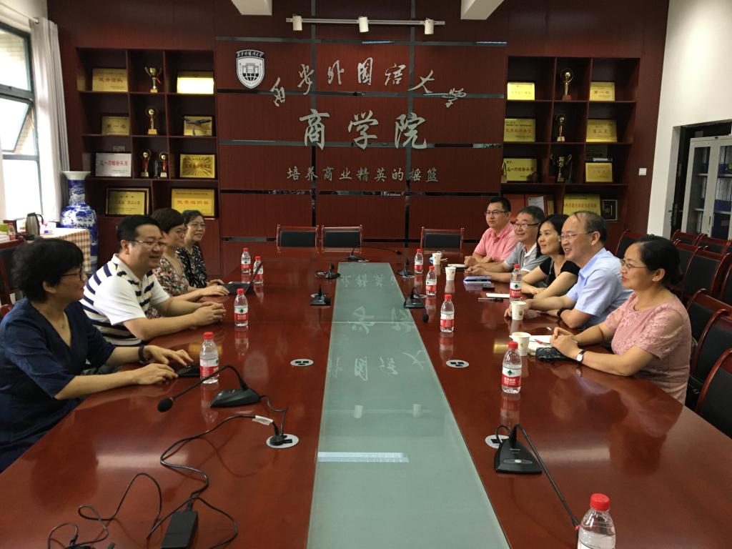 7月16日上午,KY开元集团官网外语系商务英语专业教学团队一行五人在外语系主任郭继荣的联系和安排下,由外语系副主任赵永生带队,赴西安外国语大学商学院调研该院商务英语专业建设和实验室建设。