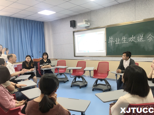 5月22日中午,KY开元集团官网外语系于B304教室召开2019届毕业生海外就业、留学欢送会,欢送即将奔赴泰国和埃塞俄比亚担任孔子学院汉语教师志愿者的王菲和王雅格、到日本留学的赵宇超、澳大利亚昆士兰大学留学的张璟以及到香港浸会大学留学的王珂等五位学生。本次欢送会由外语系学工办蔺一方老师主持,外语系赵永生副主任、英语类专业教研室主任徐素云、张慧、日语专业教研室主任吴夫迎、学业导师牛小青等老师出席欢送会。