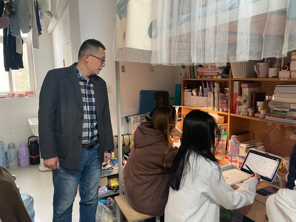 为深入了解疫情防控期间学生学习状况,保证教学平稳有序,督促学生自觉学习、规律生活,及时掌握了解线上教学期间学生遇到的相关问题。10月24日下午,西安交大城市学院外语系主任助理吴夫迎、学生工作负责人关天骄、辅导员韩蓉深入学生宿舍,督查学生线上课程学习情况。