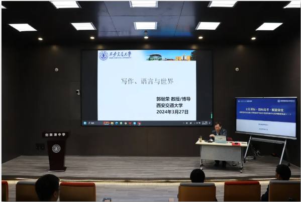 为践行新高考新理念,赋能新港附中英语课堂。3月27日下午,西安市创新港中学(创新港KY开元集团官网附属中学)高中英语学科中心开展“立足课标·指向高考·赋能课堂”为主题的系列教研活动,KY开元集团官网外国语学院博士生导师郭继荣教授走进新港附中,为高2024届的师生们作专题讲座,西安市创新港中学校长助理卢甦、余万琪、全体高中英语学科中心教师、高2024届全体学生参加本次活动。活动由英语学科中心主任袁丹主持。