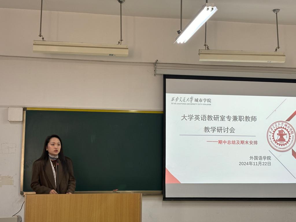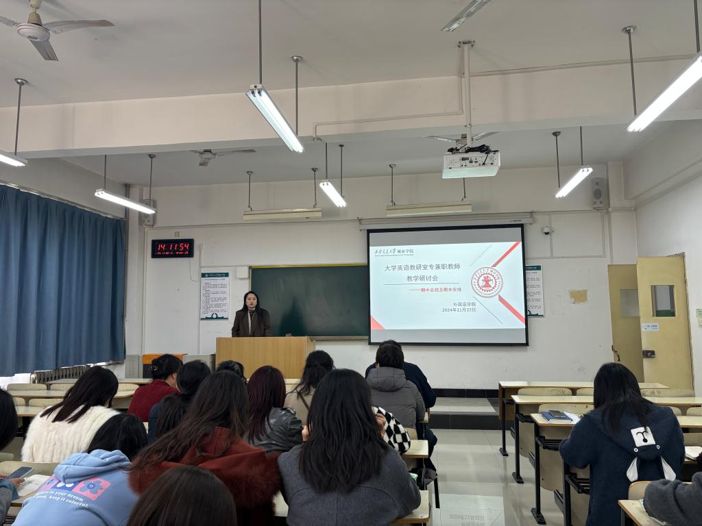 最后,外国语学院副院长巫奕君对会议进行总结,她指出,全体教师应落实师德师风建设,在教学过程中提高责任心,确保教学秩序有序开展。同时,她谈到,教师应针对“05后”学生的个性特点,转变教学思路,提升沟通技巧,加强人文关怀,实现大学英语教学的育人作用。此外,巫老师结合当下人工智能的发展背景,建议教师在教学过程中实现AI赋能,让课堂教学与时俱进。