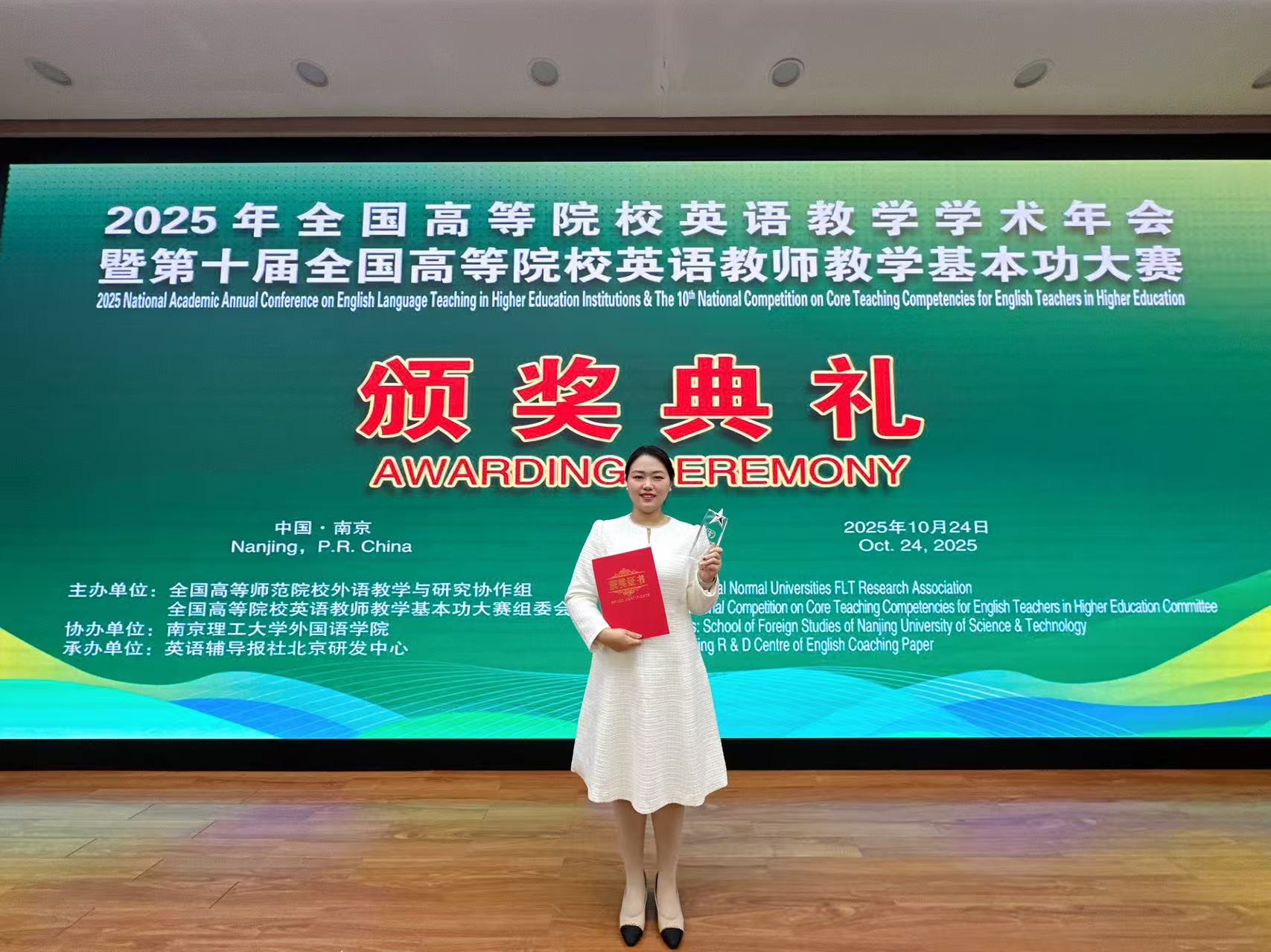 此外,在日前揭晓评审结果的全国高等学校外语微课优秀作品征集与交流活动和2025年外研社“教学之星”比赛课程思政案例专项赛中,我校英语教学团队获得不同赛道多个奖项。
