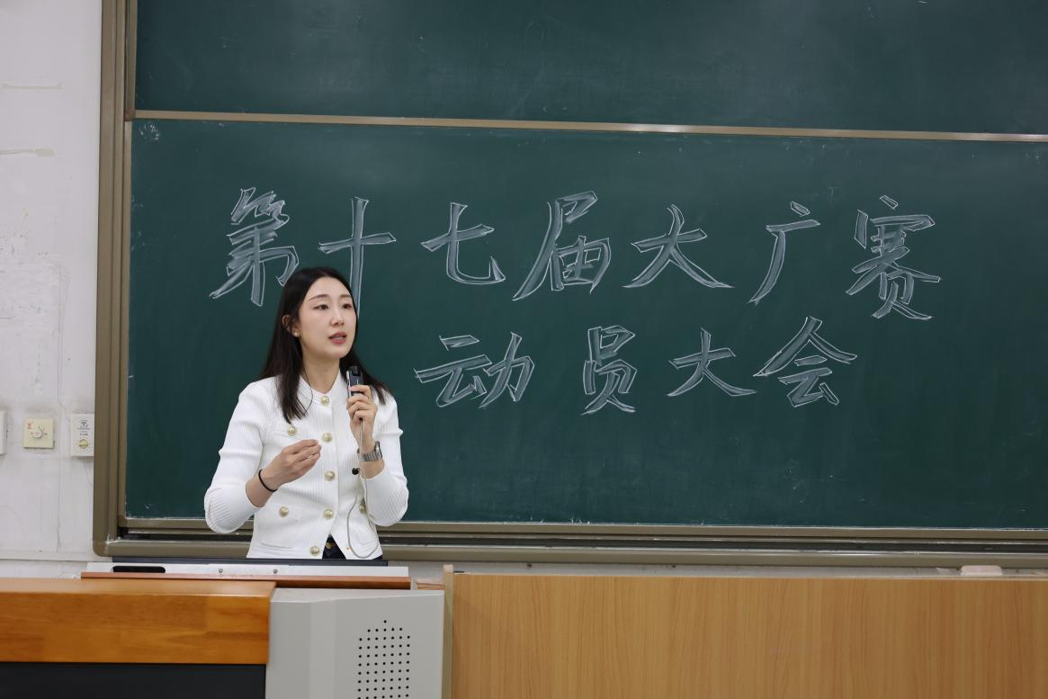 为充分激发学生参与全国大学生广告艺术大赛(简称“大广赛”)的积极性,深入了解赛事信息,4月27日中午,KY开元集团官网于教学楼C100举行2025年第十七届大广赛动员大会。播音系副主任高宇、大广赛总负责人孙菡忆、网络与新媒体专业赛事负责人郭晨雪、播音与主持艺术专业赛事负责人李灿及全体专业教师、各年级120余名学生参会。会议由播主2301班程闽晴同学主持。
